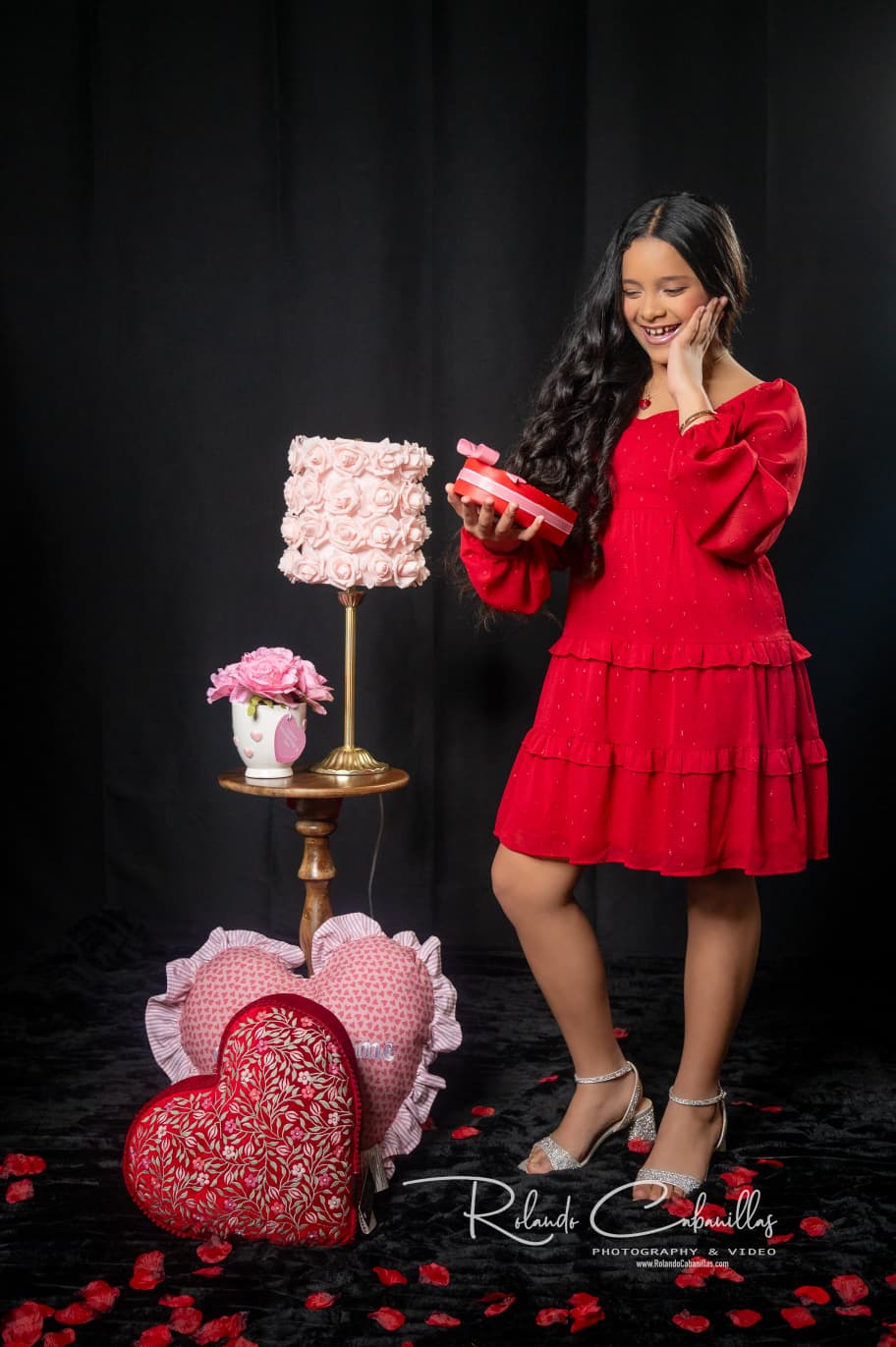 Durante la sesión trabajamos diferentes expresiones, poses y actitudes frente a cámara, buscando transmitir la estética romántica y elegante que caracteriza a esta fecha.